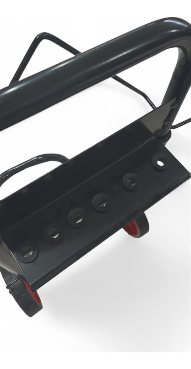 Tiene posibilidad de colgar la manguera en la parte central y a los costados tiene ganchos para poder colgar la lanza y el cable. También tiene un tablero en la parte posterior para guardado de 6 picos con acople rápido.